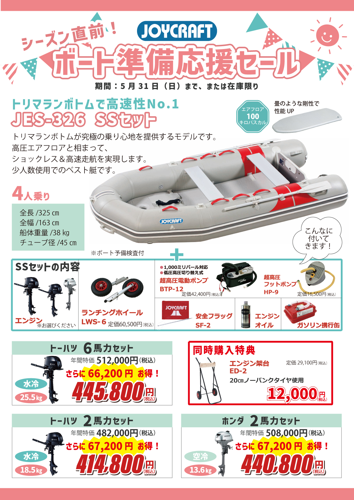 【キャンペーン・セール】 【ボート準備応援セール】ジョイクラフト 船外機セットを特別価格にて販売!【2026年5月31日まで】