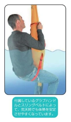 ブイの浮力は150Nあり、落水者が座っておく事ができるスリングベルトもついてるため体力の消耗を抑えることができ、いざという時の生存確率を飛躍的に高めます。