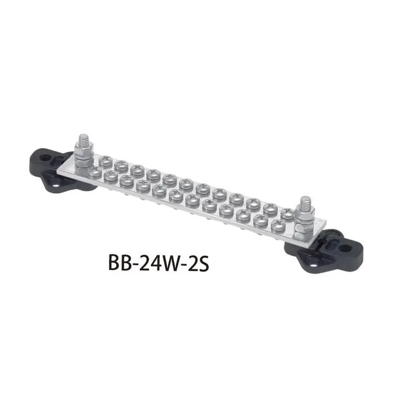 720137 | 150Amp バスバー (BB-24W-2S) スタッド :6mm x 2本 スクリュー:4mm x 24本 最大許容電流:150A サイズ:L173 x W42 x H29mm |