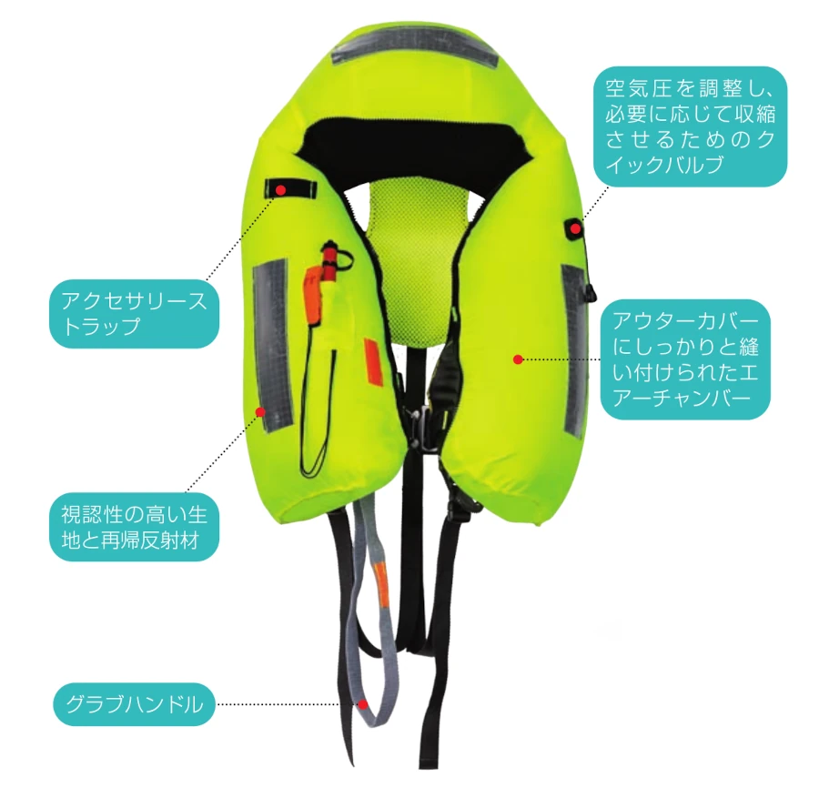 a) ii 2011年より後に製造された場合は、ISO12402-3 (Level 150) に準拠し、笛、リフティンググループ、反射材、自動/手動膨張システムの装備: