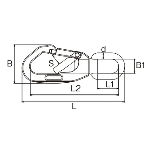 | No. | サイズ | d | L | L1 | L2 | B | B1 | S | 重量(g) | 使用荷重(kg) |