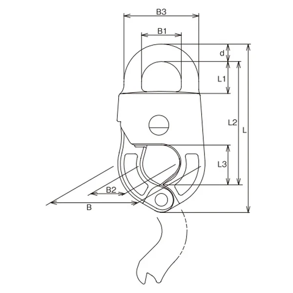 | No. | サイズ | d | L | L1 | L2 | L3 | B | B1 | B2 | B3 | 重量(g) | 使用荷重(t) |