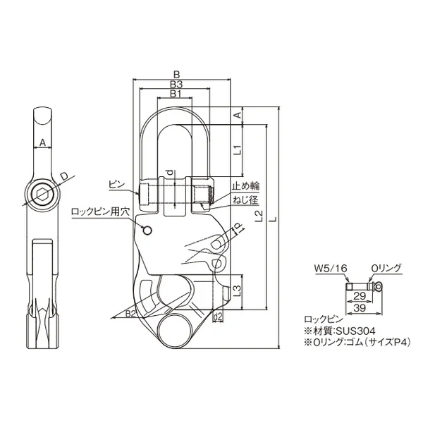 ※材質:SUS304 ※Oリング:ゴム(サイズP4)