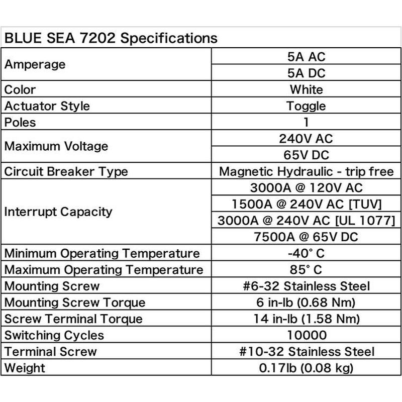 - Blue Sea Systems社のスイッチパネルに使用される業界標準のマグネット回路ブレーカー
