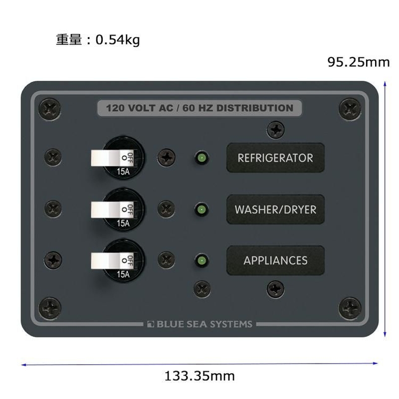 BlueSea スイッチパネル 120VAC 3 Circuit Breaker (8058)