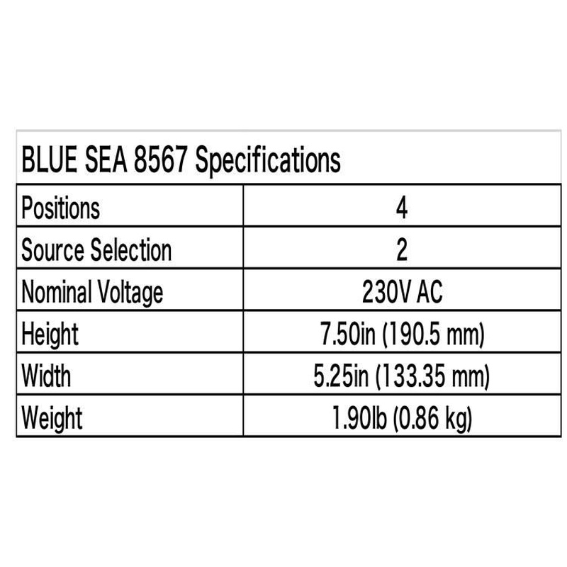 BlueSea Panel 2 Sources230VAC +4 pos 30A (8567)