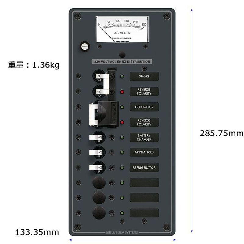 BlueSea スイッチパネル 2ソース230VAC 10pos Mter (8589)