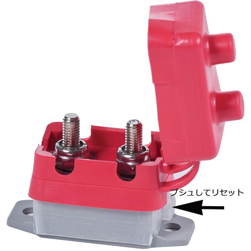ヒューズの代わりにサーキットブレーカーを使用すると経済的です。過酷な環境に耐える耐腐食性材料を使用しています。IP64防水ブーツは、ほこりや水の侵入を防ぎます。トリップ後はプッシュボタンでリセットします。ターミナルはステンレス製ロックナット付きです。赤色※ 保護カバー付き