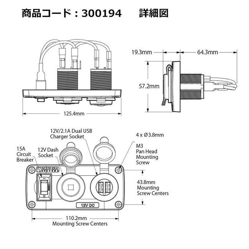 BlueSea DC USB OUT パネル 12VDC Sckt & USB (4353)