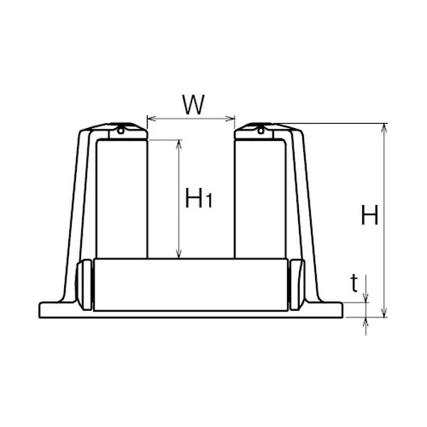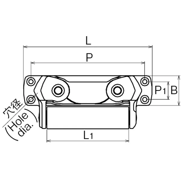 | No. | サイズ | L | L1 | B | P | P1 | W | H | H1 | t | 穴径 | 使用六角レンチ径 | ローラー径 | 重量(kg) |