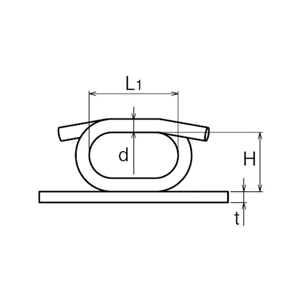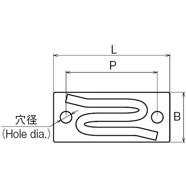 | No. | サイズ | d | L | L1 | B | P | H | t | 穴径 | 重量(g) | 最大使用ロープ径 |