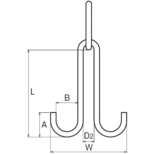 | No. | 呼び径(d) | D1 | D2 | L | W | A | B | 使用荷重(t) | 計算重量(kg) |