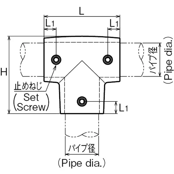| No. | サイズ(パイプ径) | L | L1 | H | 重量(g) |