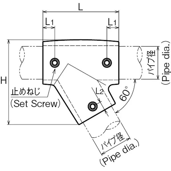 | No. | サイズ(パイプ径) | L | L1 | L2 | H | 重量(g) |