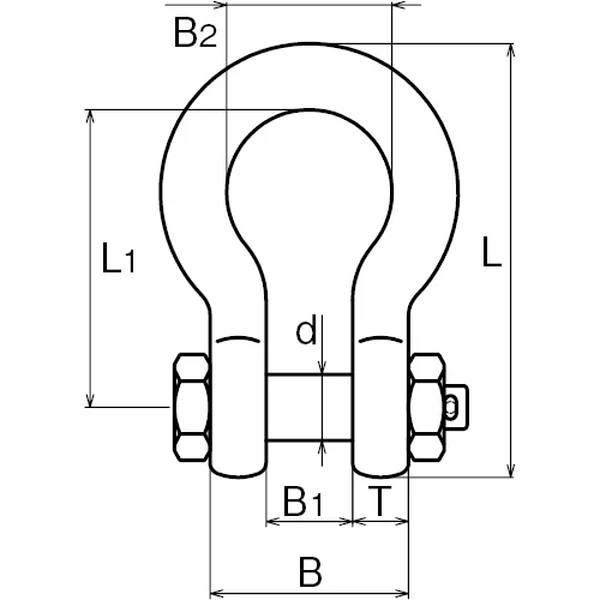 | No. | サイズ | d | d1 | L | L1 | B | B1 | B2 | T | D | ねじ径 | 重量(g) | 使用荷重(kg) |