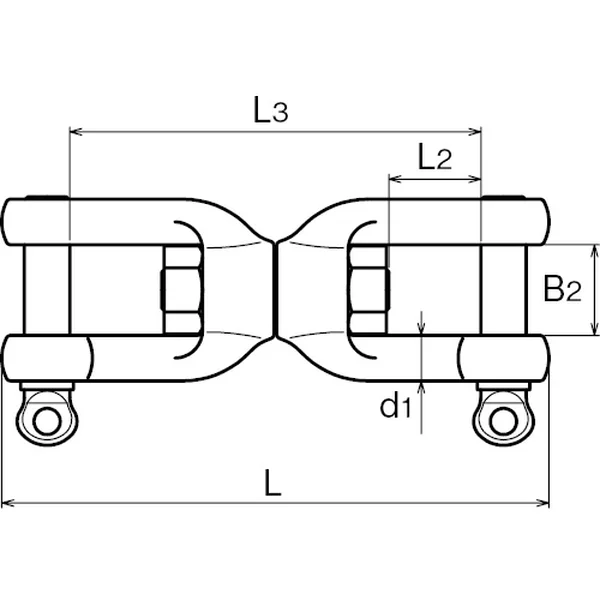 | No. | サイズ | d1 | L | L2 | L3 | B2 | ねじ径 | 重量(g) | 使用荷重(kg) |