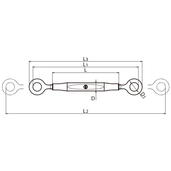 | No. | サイズ | L | L1 | L2 | L3 | D | D1 | ねじ径 | 重量(g) | 使用荷重(kg) |