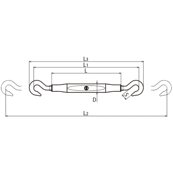 | No. | サイズ | L | L1 | L2 | L3 | D | S | ねじ径 | 重量(g) | 使用荷重(kg) |