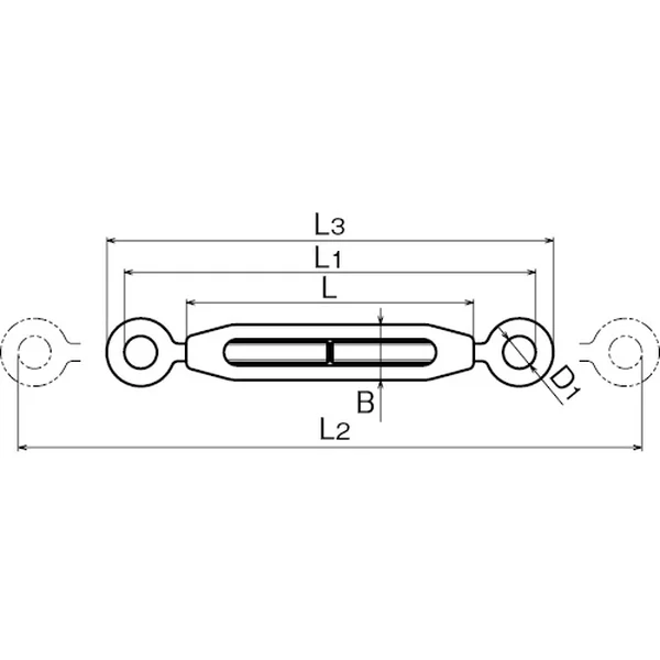| No. | サイズ | L | L1 | L2 | L3 | B | D1 | ねじ径 | 重量(g) | 使用荷重(kg) |