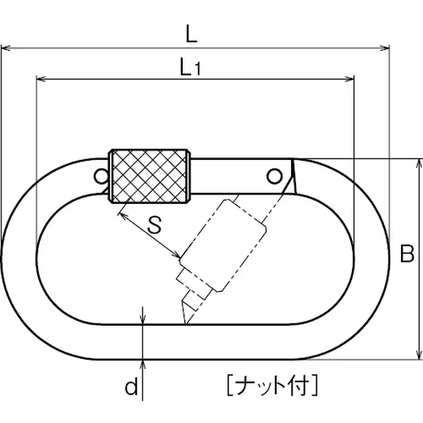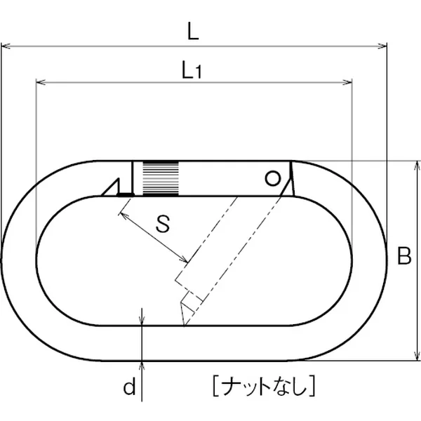 | No. | サイズ | d | L | L1 | B | S | 仕様 | 重量(g) | 使用荷重(kg) |