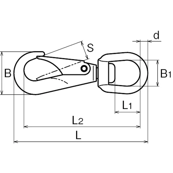 | No. | サイズ | d | L | L1 | L2 | B | B1 | S | 重量(g) | 使用荷重(kg) |
