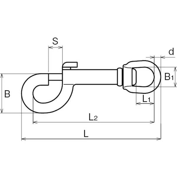 | No. | サイズ | d | L | L1 | L2 | B | B1 | S | 重量(g) | 使用荷重(kg) |