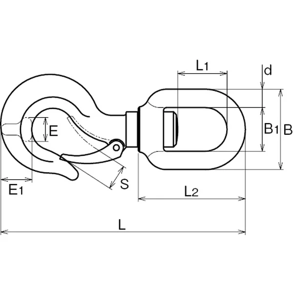 | No. | サイズ | d | L | L1 | L2 | B | B1 | S | E | E1 | 重量(g) | 使用荷重(t) |