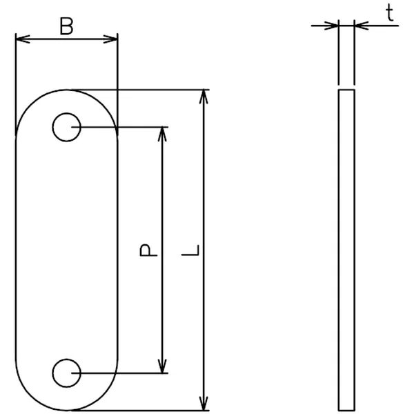 | No. | サイズ | L | B | P | t | 穴径 | 重量(g) |