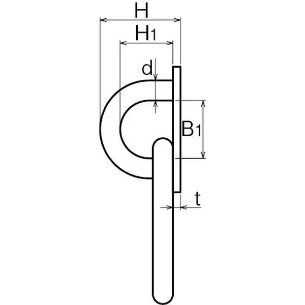 | No. | サイズ | d | B | B1 | P | D | H | H1 | t | 穴径 | 木ねじ径 | 重量(g) | 使用荷重(kg) |