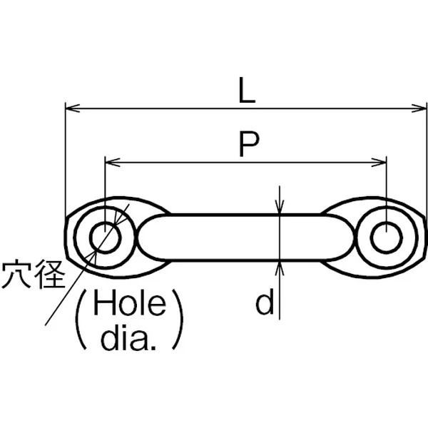 | No. | サイズ | d | L | P | H | 穴径 | 木ねじ径 | 重量(g) | 使用荷重(kg) |