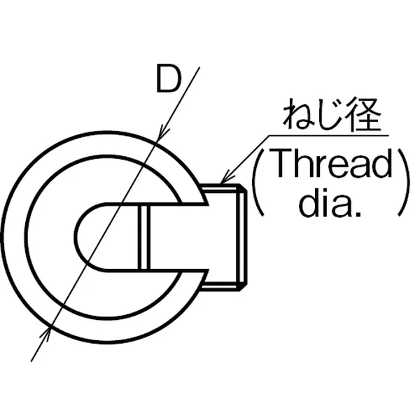 | No. | サイズ(ワイヤー適応径) | L | D | ねじ径 | 六角レンチ | 重量(g) | |