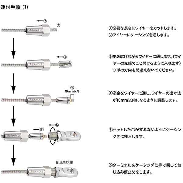 ※ L・L1の寸法は、ワイヤーの種類や組み付けによってバラツキが出ますので、あくまでも目安の寸法となります。