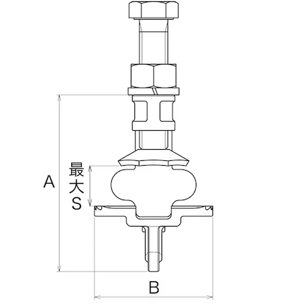 | No. | サイズ(最大S) | L | W | W1 | A | B | H1 | H2 | ねじ径 | 重量(g) | 荷重方向 | 使用荷重(kg) | 締付けトルク(N・m) |