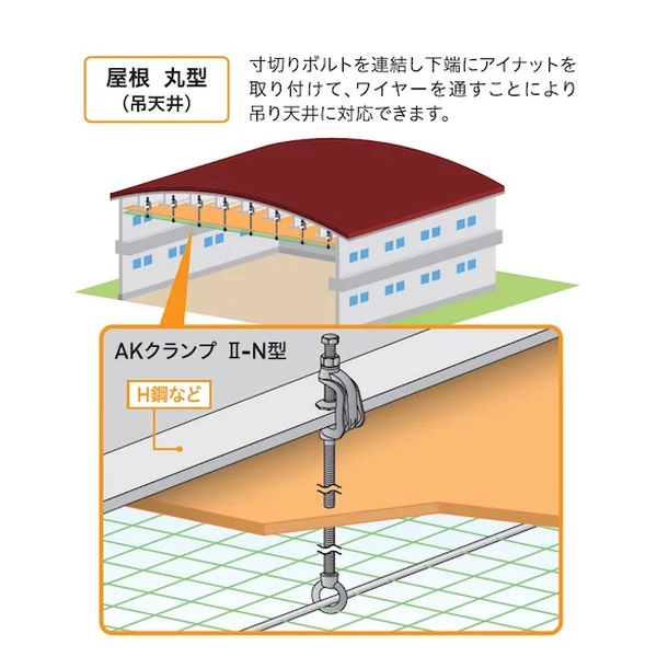パイプ吊り金具、照明、ケーブルラックなどを吊り下げることができます。