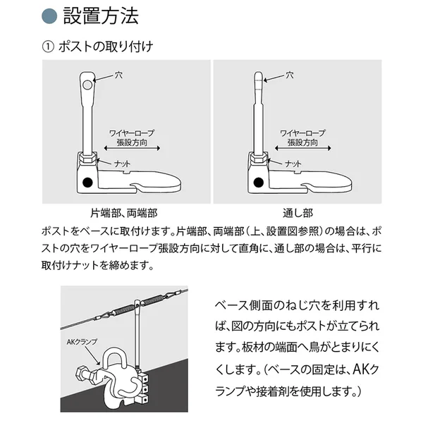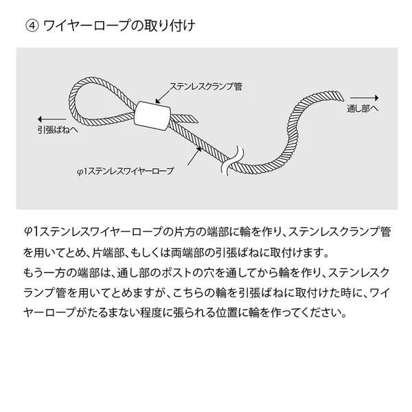 H鋼などに取り付け、本体のリングに直接ワイヤーを通し使用できます。