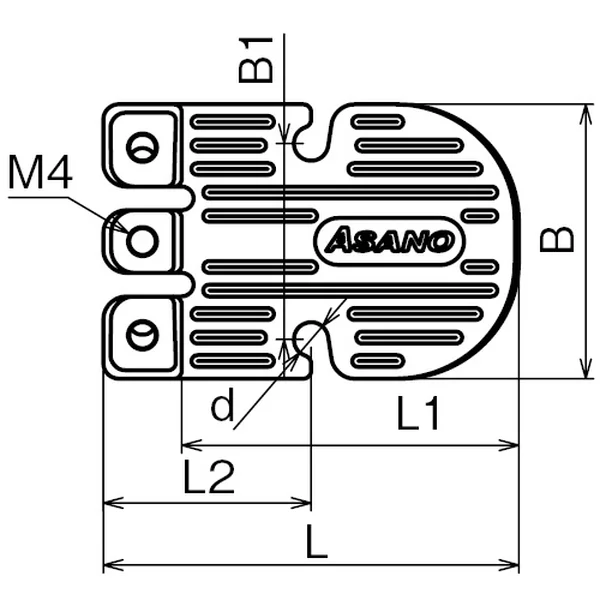 | No. | サイズ | d | L | B | B1 | P | H | H1 | t | 穴径 | 木ねじ径 | 重量(g) | 使用荷重(kg) |