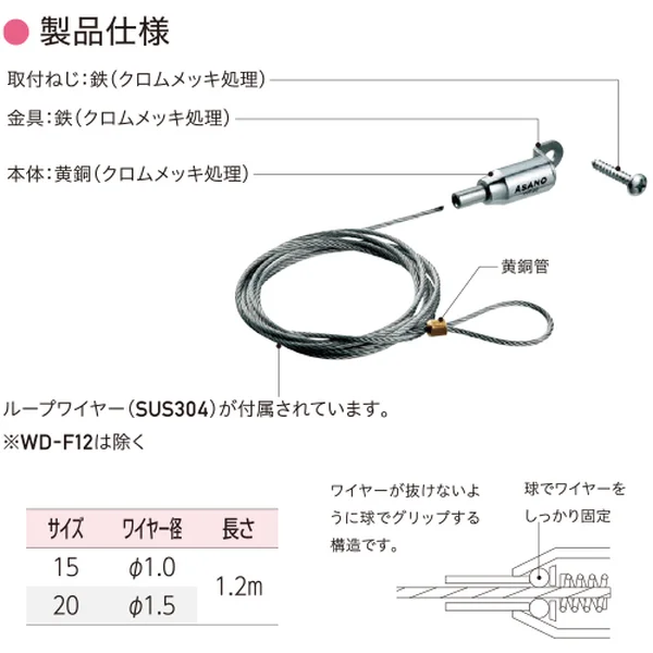 | No. | サイズ | d | L | B | H | 重量 | ワイヤー径 | 使用荷重 |