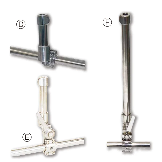 レール用起倒式・・・φ19~φ$32のレールに取り付け可能。レバー操作で角度も自由に調整できます。